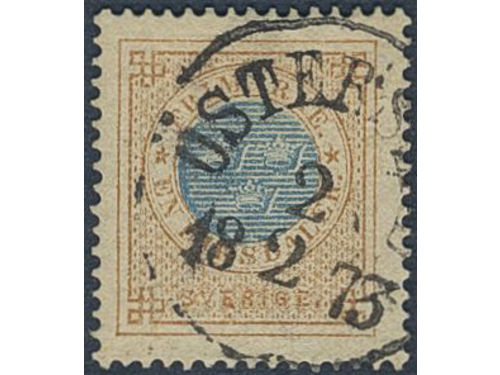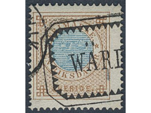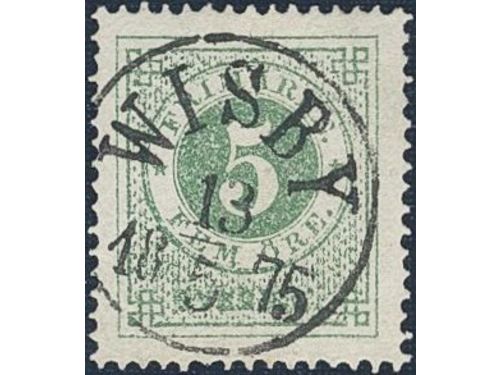Sweden. Facit 19f used, 5 öre dark green, grainy print. Superb–EXCELLENT cancellation WISBY 13.5.1875. One slightly short perf. Show less