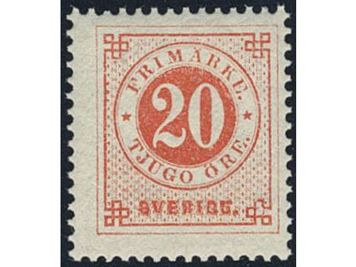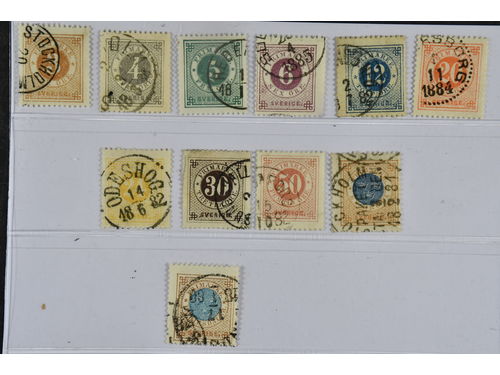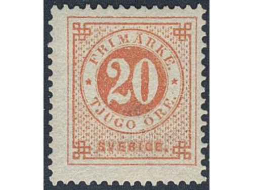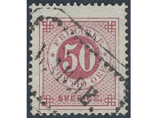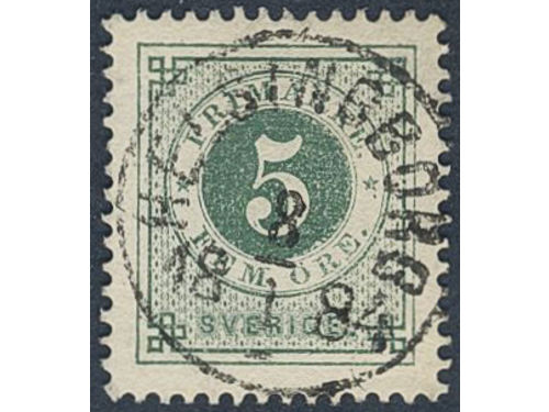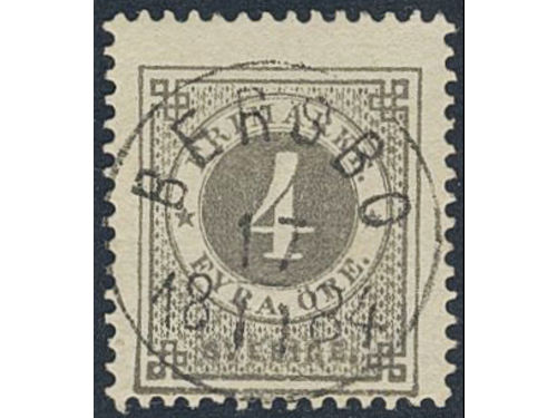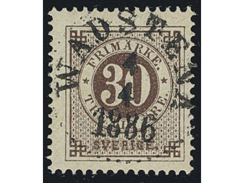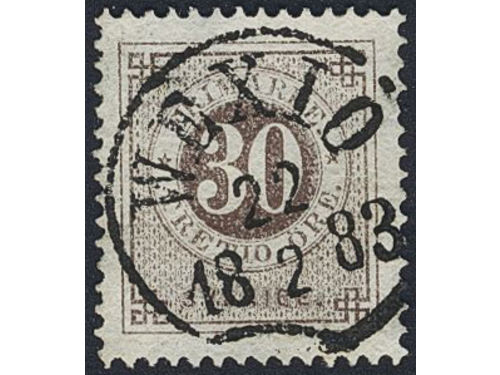 Sweden. Facit 35v12 used, 30 öre brown, white flaw in “3” = “80” variety. Beautiful copy cancelled STOCKHOLM PAKET STADEN 26.10.1881. A few worn perfs. Show less