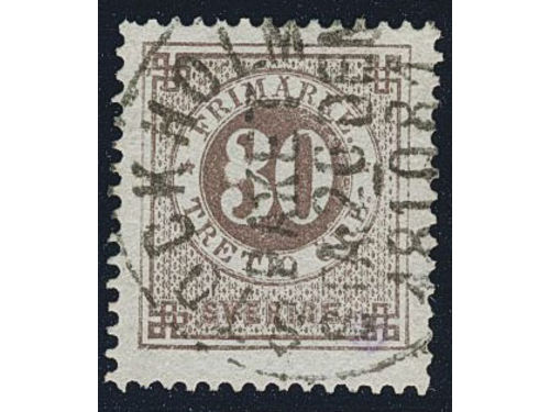 Sweden. Facit 35v12 used, 30 öre brown, white flaw in “3” = “80” variety. Beautiful copy cancelled STOCKHOLM PAKET STADE..
