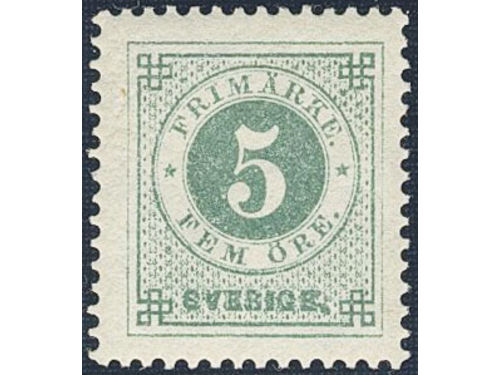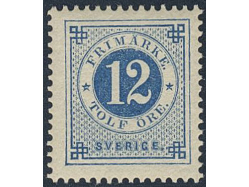 Sweden. Facit 32h ★★, 12 öre dark blue–light blue on calendered paper. Very fine and fresh, never hinged copy with opinion (shade) by O.P. Show less
