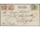 Sweden. Facit 16e, 7c2 on cover, 5+2×20 öre on very fine cover sent from STOCKHOLM 13.6.1870 to Russia, with arrival pmk RIGA. Certificate HOW 3 (4,4,4) (3,3,3) 3 (1997). Please see www.philea.se for further information.