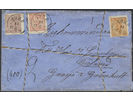Sweden. Facit 16e, 10f2, 11g on cover, 24+30+50 öre on insured 2-fold cover, with preserved strings, sent from TORP 14.6.1872 to Gislaved. Small imperfections of less importan..