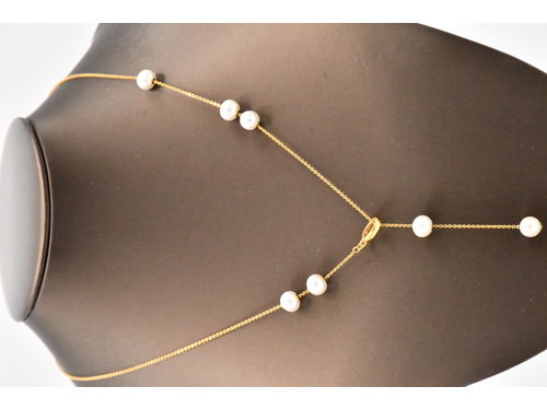 Jewellery – Necklace. Gold, 8,5 gr, A classic necklace, 40 cm, rods, pearls & turquoises. Beskrivning på SVENSKA:..