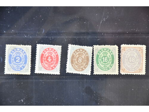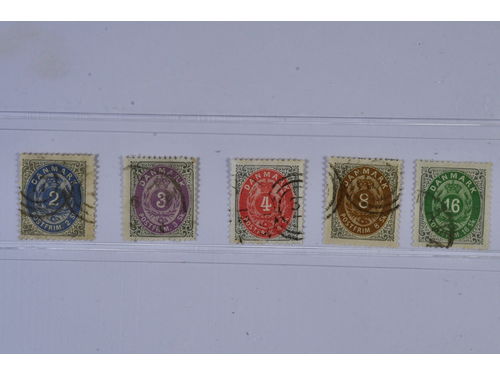 Denmark. Accumulation used 1854–1937 in stockbook. Duplicate stock: F4-280. Up to one hundred of each, incl five cpl set's of Newspaper stamps T1-10. (cat value about 111000 SEK acc to vendor.) A selection of scans are presented at www.philea.se. Show less