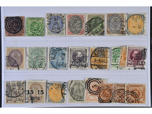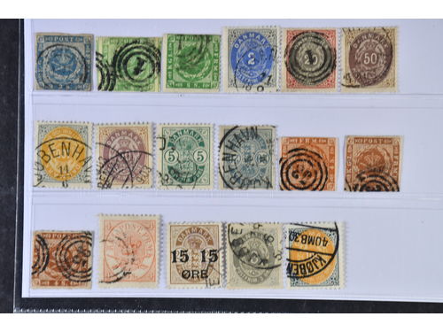 Denmark. Accumulation used 1854–1937 in stockbook. Duplicate stock: F4-280. Up to one hundred of each, incl five cpl set..