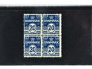 Denmark. Facit 83 ★★, 1912 Wavy-lines with hearts 20 øre dark blue, perf 12¾, watermark crown. Block of four. SEK 3000