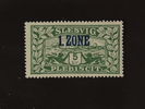 Denmark, Schleswig. Facit 27 or Scott 27 ★★, 1920 Overprint on Lion and Landscape 10 Kr red with blue overprint variety. Mi 27b.