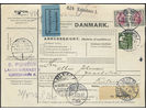 Denmark. Facit 162, 226 on cover, 40 øre + 2×2 kr on address card for parcel sent from KØBENHAVN 19.8.27 to Finland. Arrival pmk JAKOBSTAD 25.VIII.27. SEK 1500
