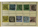 Germany, states. ★★/★/⊙. Several 100s of stamps, mint and used, for the most part housed in one album on it quadrille album leaves, completely uncatalogued. The gamut of condition here and it is not presented in alphabetical order and sometimes needs work. Highlights inc NGC with dozens of stamps, very attractive 3 pages with coloured postmarks, straightlines, all denominations, then follows Saxony to the left and right side profiles, again both by the dozens with values to 5ngr, next is Wurttemberg from various imperfs and a subsequent range of definitives, then Hannover shields and profile issues, followed by Baden shields and far more in the coat of arms types, mostly used, again all looking very impressive. Next follows New Brunswick with the running horse both perf and imperf, then Prussia with two dozen or so imperfs, loads of shield issues here, as well as Thurn and Taxis, with many better stamps, virtually all used, other areas inc Bergerdorf through to Hamburg, the German States finally ending with Oldenburg, imperfs Bavaria, etc, etc. There is also a very good German Empire with at least 75+ examples in both categories of dual currencies first issues to research. Much, much more here than described, will clearly catalogue into many 10s of 1000s of euro. Show less