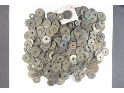Coins, ALL WORLD. One box with seven coins in silver and bronze, china 100 cash and Annam 60 van + Sweden, Germany and UK, mixed quality. Show less