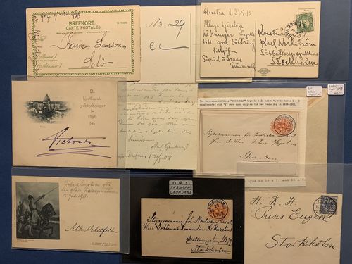 Autographs. Lot. Cards/Covers from or to famous people, e.g. Carl Larsson, Sigrid Hjertén and Isaac Grünewald. Please see a selection of scans at www.philea.se. Show less