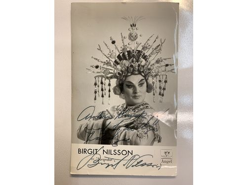 Autographs. BIRGIT NILSSON (1918–2005). Swedish dramatic soprano. Elegant ink drawing, 22.5 x 34 cm + Signed photo with Birgit Nilsson as "Turandot". Show less