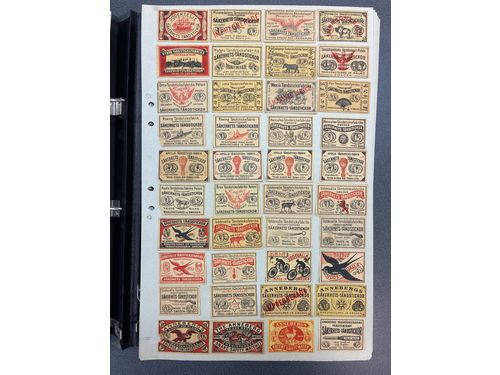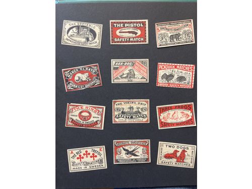 Matchbox labels, Sweden. Old collection of safty matches in album, glued to the top edge of the label. Nice collection. Please see a selection of scans at www.philea.se. Show less