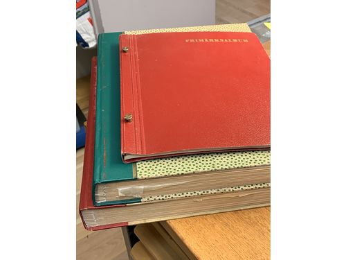 Sweden. Miscellaneous. Lot. Box with e.g. insured covers from ca.1930, unused picture post cards from the exhibition in.. Read more Sweden. Miscellaneous. Lot. Box with e.g. insured covers from ca.1930, unused picture post cards from the exhibition in Stockholm 1930, 4 skill blue in two parts before cancellation on cover to Gagnef, cancelled 7.X.1856 + three other covers. All with content + three albums sparsely filled with stamps. Please see a selection of scans at www.philea.se. Show less