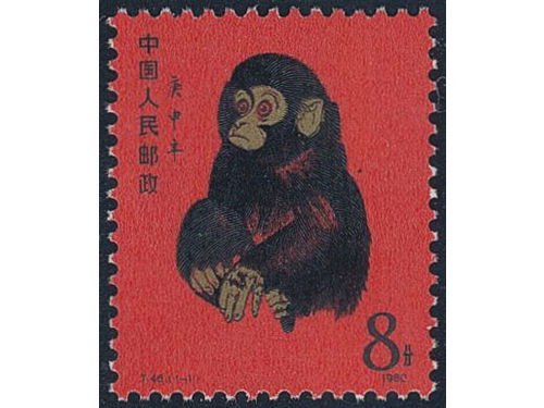 China, People’s Republic. Michel 1594 ★★, 1980 Year of the Monkey 8 f red/black with original invoice from China Stamp E..