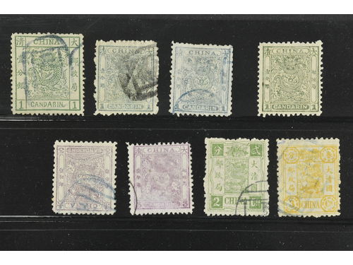 China, Empire. Lot used 1878–1894. Large dragon with perf. faults, others F/VF. €595