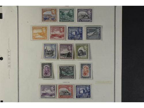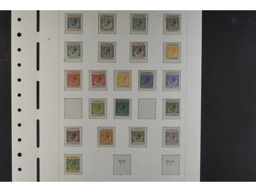 Cyprus. Collection ★ 1924–1960 on leaves. 1924 KGV incl. 45 pi and 90 pi, KGVI 1938–51 complete mh incl. a couple of extra shades, 1955–1960 up to 500 m mh. The entire lot is presented at www.philea.se. Mostly fine quality. (56) Show less