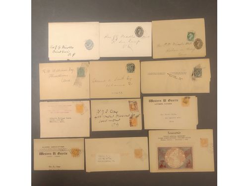 Canada. Postal stationery. Collection Wrappers ex No 1–41, incl. types, additional frankings, destinations and private prints, also two official with perfins. 67 different in glassine envelopes classified after special catalogue by Kosniowski. Please see a selection of scans at www.philea.se. Good quality. Show less