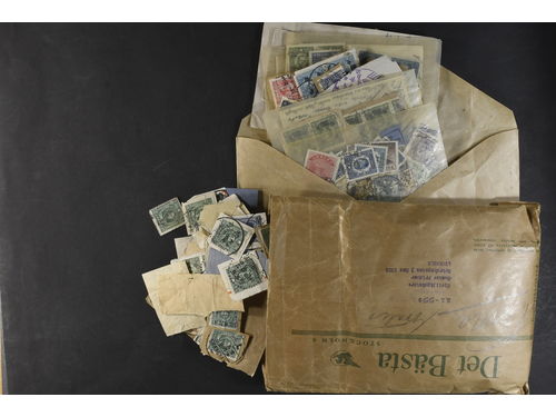 China, R.O.C. Used. Box with early papercuts 1920–1940s. Nothing expensive identified, but many different stamps and cancels – seldom seen.