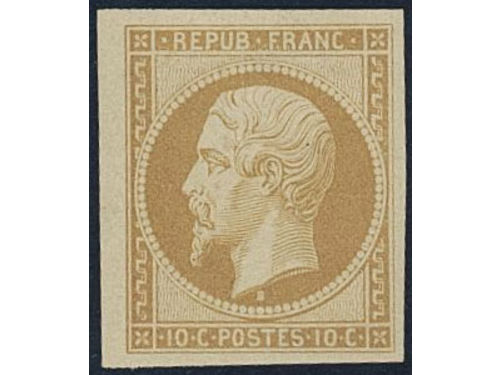 France. Michel 8a ★, 1852 Louis Napoleon 10 c yellow-brown lightly hinged mint, refer Yvert 1852 issue, depending on shade cat 25,000 euro, beautiful exhibition item. EUR 35000 Show less