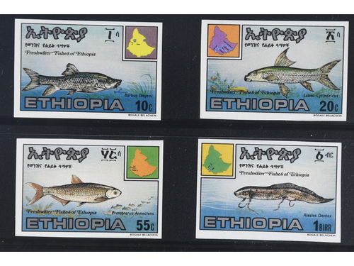 Ethiopia. Michel 1204–07 ★★, Sweet Water Fish set. Imperforated,only 150 sets issued. Not valued in Michel.