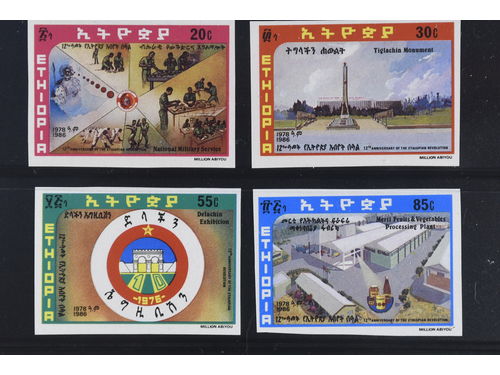 Ethiopia. Ethiopia 1240–3 **, 12th Anniversary of the Revolution. Imperforated, only 150 sets issued. Not valued in Michel. Show less