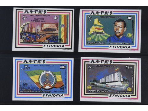 Ethiopia. Michel 1307–10 ★★, People's republic one year anniversary. Imperforated, only 150 sets issued. Not valued in Michel. Show less