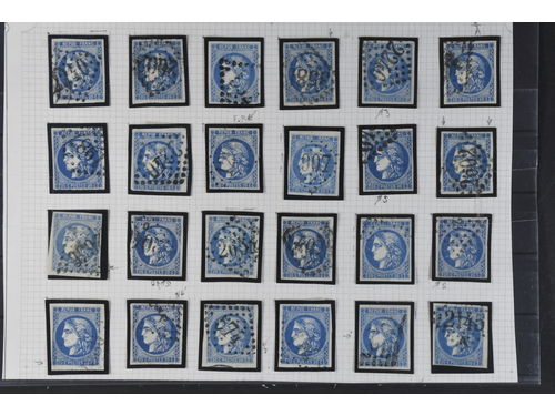 France. Collection/accumulation used 1849–1900 on leaves. Interesting with some better stamps, lots of duplicates incl. many different shades. Interesting part with cancels, mostly from different Paris officies. A nice study lot. Somewhat mixed quality. (500+) Show less