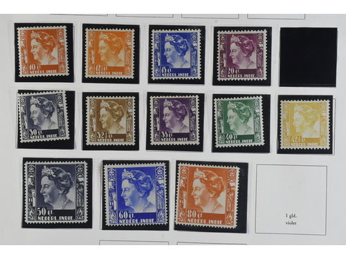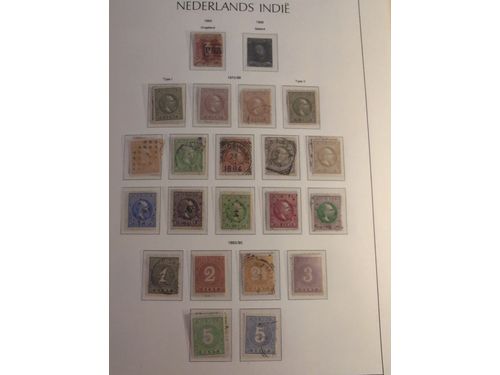 Dutch East Indies. Mostly used. Collection 1864–ca. 1970 on leaves. Containing e.g. Mi1–55, 61–78 and some better back-of-the-book, etc. Please see a selection of scans at www.philea.se. Mostly fine quality. (800) Show less