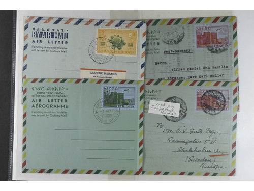 Ethiopia. Postal stationery, collection 1950s–1970s. Air Letters, incl. two Specimen, two with missing colours, one unofficial and a couple of postal cards. The entire lot is presented at www.philea.se. Mostly fine quality. (25) Show less
