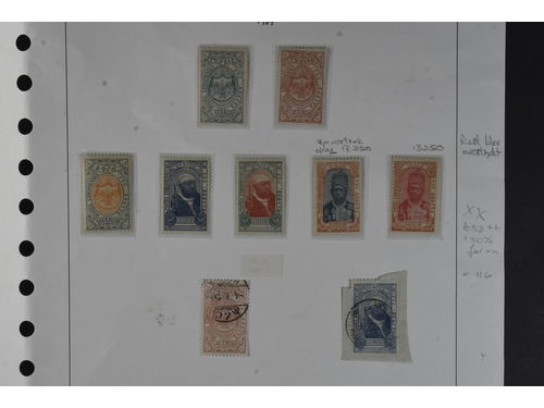 Dutch colonies. Collection ★★/★/⊙ 1864–1962 in Leuchtturm album. Including Netherlands Indies, New Guinea and Antilles. Comprehensive Netherland Indies with some duplicates in the beginning used later mint. New Guinea incl. two different sets of UNTEA. Please see a selection of scans at www.philea.se. Mostly good quality. (ca. 450) Show less