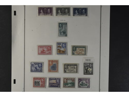 Fiji. ★★. A very attractive quality mint collection, housed on album leaves, KGV onwards, including the good types/good defins, MNH complete. Also, the postage dues complete MNH of 1918 and 1940, everything in tip top condition. A recommended viewing. Show less