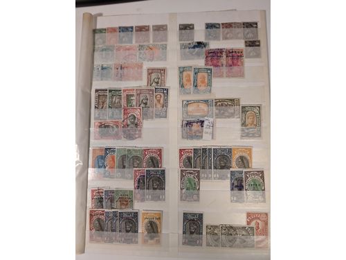 Dutch colonies. Collection/accumulation ★★/★/⊙ ca. 1870–1960s in two albums. Collection Surinam in Davo album with mounts, Dutch New Guinea on pages and Stockbook with duplicates from all Netherland colonies. Incl. some a bit better stamps. Please see a selection of scans at www.philea.se. Somewhat mixed quality. (1000s) Show less