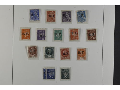 France. Lot ★★/★ 1944 on leaves with stamp mounts. Locals, incl. better sets. No gurantee. The entire lot is presented at www.philea.se. Mostly fine quality. (158) Show less