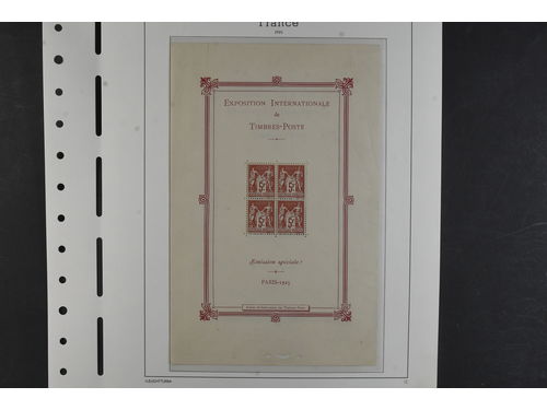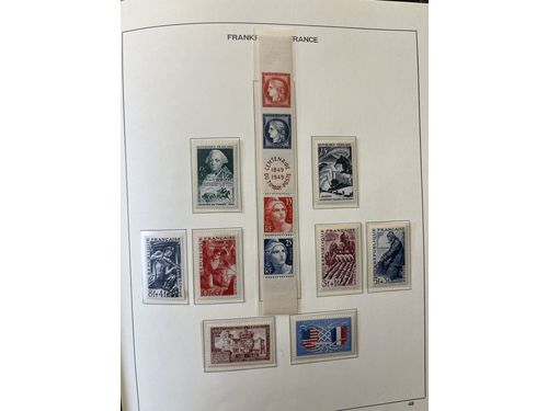 France. Collection ★★/★/⊙ 1849–1959 in two Leuchtturm albums. Extensive collection with plenty of good stamps and sets e.g. Mi 2, 5, 7, 17 (only three margins), 32, 39, IV (thin), 78 *, 76 *, 134, 151 *, 182–183 *, Bl2 (folded, stamps **) with essentally complte afterwards. Up to 1880s used later mixed with many both used and mint incl. never hinged from the early 1940s. Good section back of the book and some foreign officies. Viewing is recommended. Please see a selection of scans at www.philea.se. In the beginning mixed quality, later fine. (ca. 1500) Show less