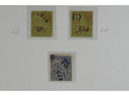 Gabon. Collection ★★/★/⊙ 1886–1932 on leaves with stamp mounts. Well filled incl. better stamps e.g. Mi1–2, 5, 11 all wi..