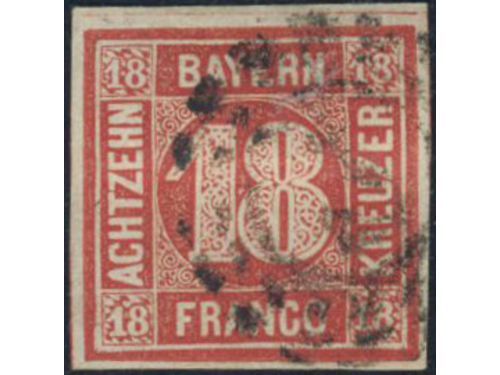 Germany, Bavaria. Michel 13 used, 1862 18 kr dark vermilion. Good margins. EUR 240 Germany, Bavaria. Michel 13 used, 1862 18 kr dark vermilion. Good margins. EUR 240 Show less