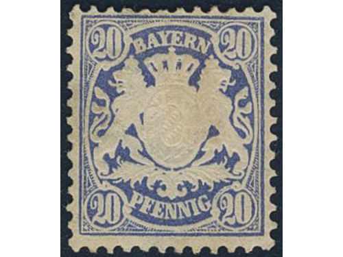 Germany, Bavaria. Michel 40c ★, 1876 Coat-of-arms on Ornament 20 pf ultramarine wmk wavy lines. EUR 220 Germany, Bavaria. Michel 40c ★, 1876 Coat-of-arms on Ornament 20 pf ultramarine wmk wavy lines. EUR 220 Show less
