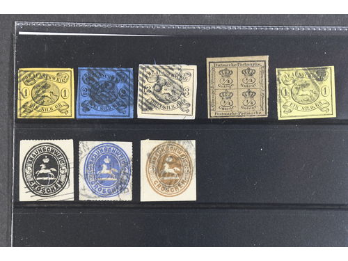Germany, Braunschweig. Used 1853–1865. All different, e.g. Mi 6–9, 11, 17, 19–20. Mostly good quality. Mi € 1290 (8) Germany, Braunschweig. Used 1853–1865. All different, e.g. Mi 6–9, 11, 17, 19–20. Mostly good quality. Mi € 1290 (8) Show less