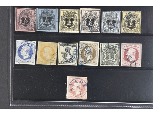 Germany, Hanover. Used 1851–1864. All different, e.g. Mi 3, 5, 10, 15–17, 19. Mostly good quality. Mi € 688 (11) Germany, Hanover. Used 1851–1864. All different, e.g. Mi 3, 5, 10, 15–17, 19. Mostly good quality. Mi € 688 (11) Show less