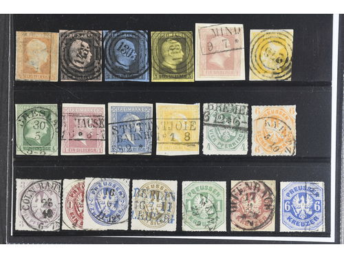 Germany, Prussia. Used 1850–1867. All different, e.g. Mi 1–4, 6, 8–9, 11–12, 19, 22, 24–25. Mostly good quality. Mi € 538 (19) Germany, Prussia. Used 1850–1867. All different, e.g. Mi 1–4, 6, 8–9, 11–12, 19, 22, 24–25. Mostly good quality. Mi € 538 (19) Show less