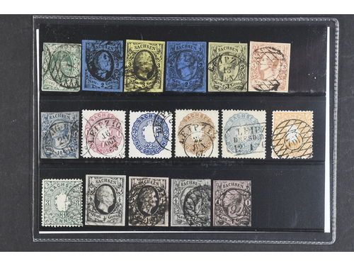 Germany, Saxony. Used 1851–1863. All different, e.g. Mi 2, 5–6, 10–13, 14–19. Mostly good quality. Mi € 853 (17) Germany, Saxony. Used 1851–1863. All different, e.g. Mi 2, 5–6, 10–13, 14–19. Mostly good quality. Mi € 853 (17) Show less