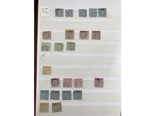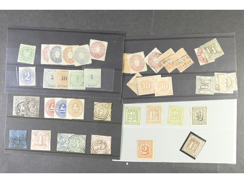 Germany, states. Collection/accumulation ★/⊙ 1850–1872 on stockbook pages. Baden, Helgoland, Norddeutscher Postbezirk an.. Read more Germany, states. Collection/accumulation ★/⊙ 1850–1872 on stockbook pages. Baden, Helgoland, Norddeutscher Postbezirk and Preussen incl a couple better. Please see a selection of scans at www.philea.se. Mostly fine quality. (150) Show less