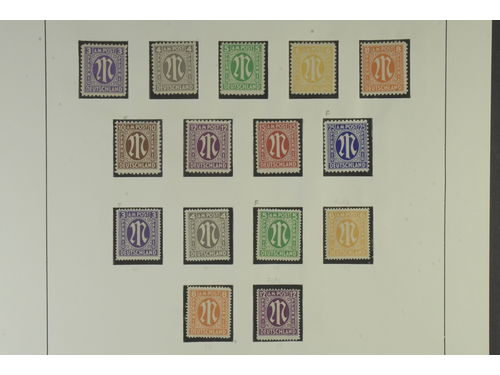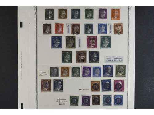 Germany, mixed. ★★/★. 'Hitler is dead', provisional local usages, unlisted in the main stream catalogues including unusu.. Read more Germany, mixed. ★★/★. 'Hitler is dead', provisional local usages, unlisted in the main stream catalogues including unusual reverse varieties O/Ps for the liberation of Northern Italy, as well as unused Lobau in Saxony, Holzhausen incl. six very scarce proofs, 37 different stamps all in all, no signs. Show less