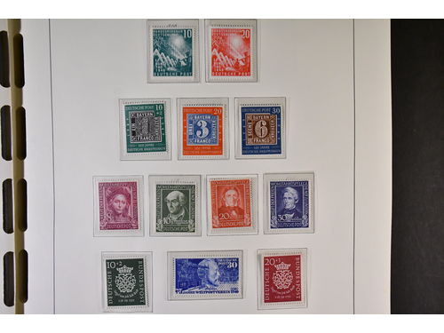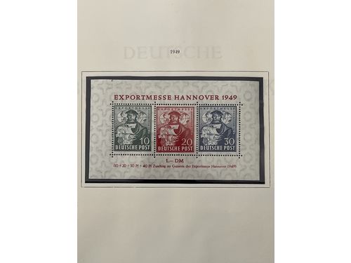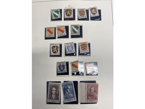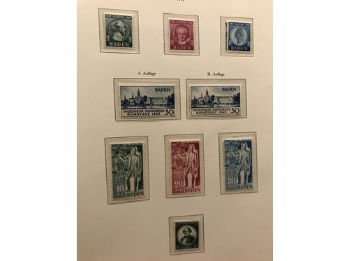 Germany, mixed. Collection ★★/★/⊙ 1946–50 on leaves with stamp mounts. E.g. better Baden and Württemberg, Common Allied.. Read more Germany, mixed. Collection ★★/★/⊙ 1946–50 on leaves with stamp mounts. E.g. better Baden and Württemberg, Common Allied Occupation incl three s/s,. Excellent quality. (600) Show less