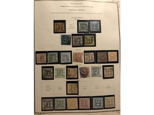 Germany, Thurn und Taxis. ★★/★/⊙. Mainly o/* collection 1852–1966 incl. dupl. containing many medium priced issues and s.. Read more Germany, Thurn und Taxis. ★★/★/⊙. Mainly o/* collection 1852–1966 incl. dupl. containing many medium priced issues and some better. Please see a selection of scans at www.philea.se. Mostly fine quality. (225) Show less