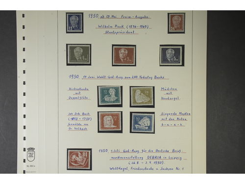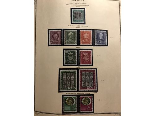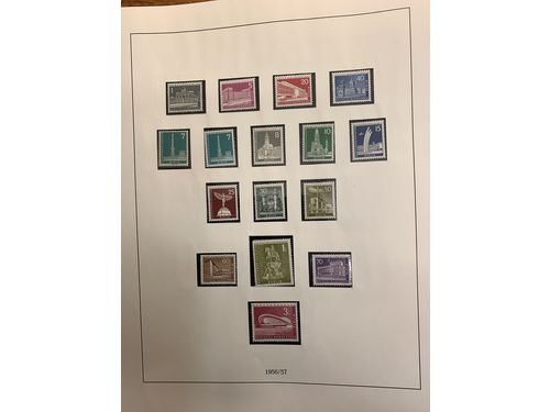 Germany, mixed. ★★/★/⊙. Collection BRD and Berlin 1948–63 in Schaubek album, DDR 1959–63 and some Allied occupation, etc.. Read more Germany, mixed. ★★/★/⊙. Collection BRD and Berlin 1948–63 in Schaubek album, DDR 1959–63 and some Allied occupation, etc. E.g. better overprints Berlin and BRD Mi139–60 incl. two sets Mi139–40. (>900) Show less