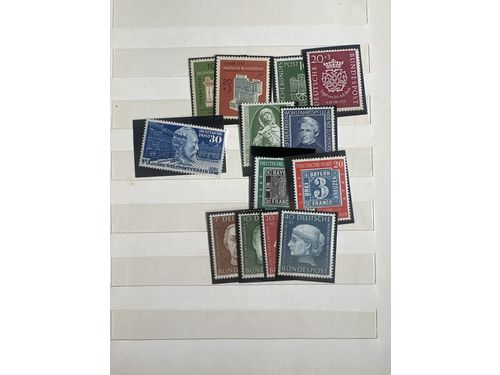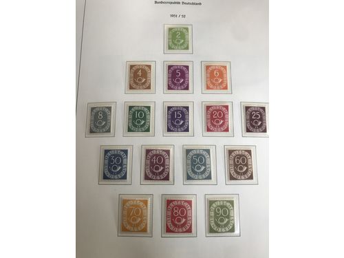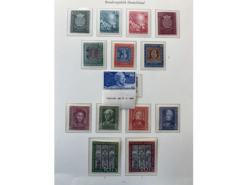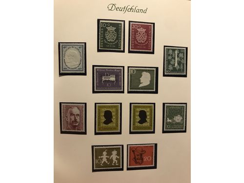 Germany, mixed. Mostly ★★. Collection BRD 1949–66 incl. e.g. Mi111–15, 121–22, 156–63 and 147–52 ** and also Berlin 1951.. Read more Germany, mixed. Mostly ★★. Collection BRD 1949–66 incl. e.g. Mi111–15, 121–22, 156–63 and 147–52 ** and also Berlin 1951–61 incl. Mi88–111 **, etc. Please see a selection of scans at www.philea.se. (550) Show less
