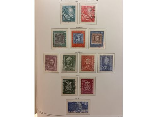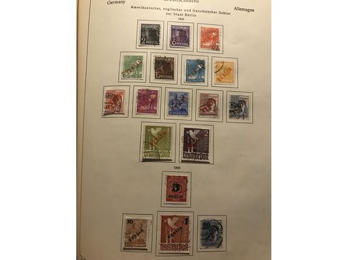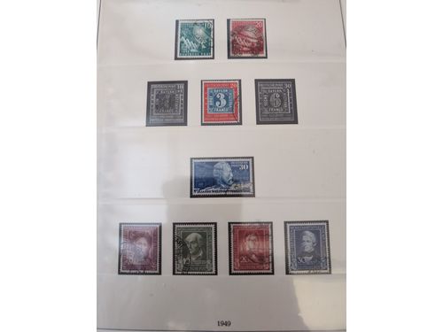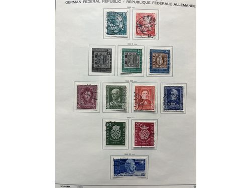 Germany, mixed. Used. Collection 1945–1970 in Schaubek album. Apparently cpl BRD 1949–1969 in main numbers and Berlin cp.. Read more Germany, mixed. Used. Collection 1945–1970 in Schaubek album. Apparently cpl BRD 1949–1969 in main numbers and Berlin cpl. Mi21–69 and 71–139, etc. Also a section US/British zone. Please see a selection of scans at www.philea.se. Show less