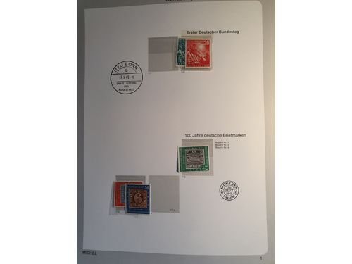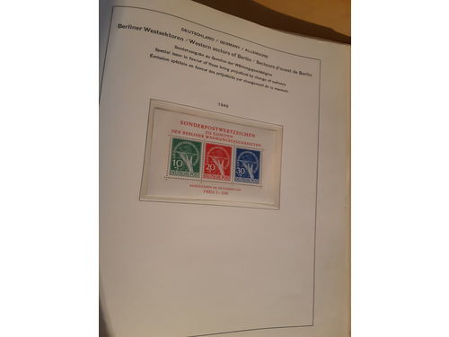 Germany, mixed. ★/⊙. Collection Berlin & BRD until 1968 incl. e.g. Berlin Mi1–68*/o, 71–78 and 62–106 used, BRD cpl... Read more Germany, mixed. ★/⊙. Collection Berlin & BRD until 1968 incl. e.g. Berlin Mi1–68*/o, 71–78 and 62–106 used, BRD cpl. in main numbers 1949–64, Saarland and also a good section zones. Please see a selection of scans at www.philea.se. Show less